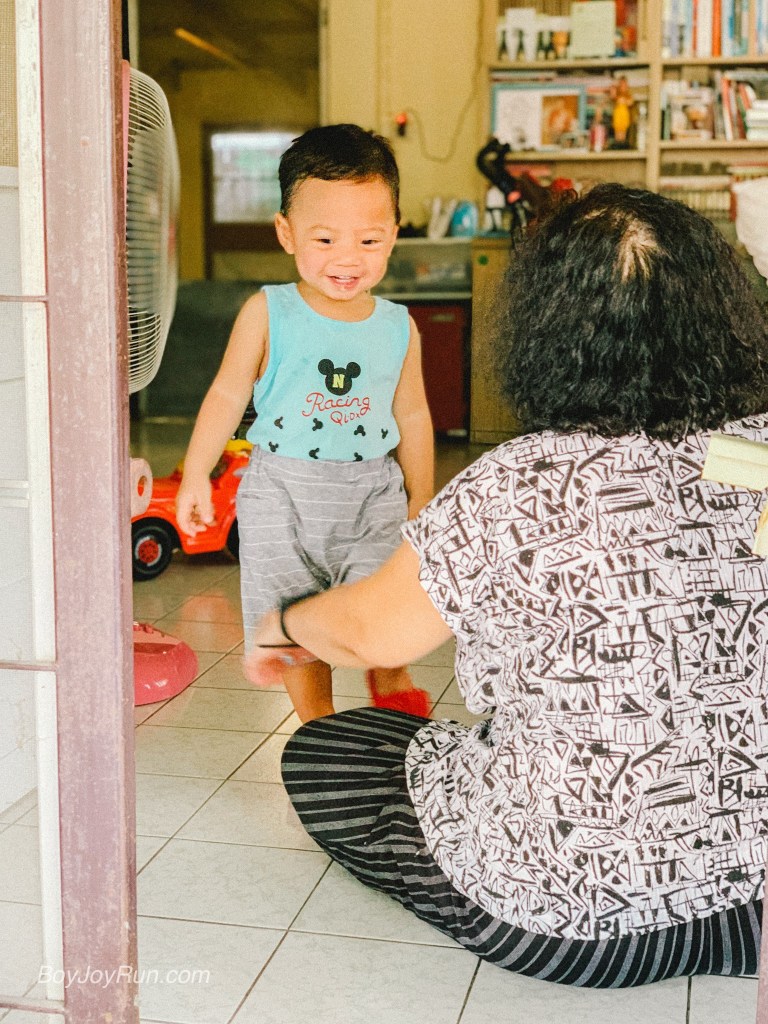 แต่ก่อนจะออกมาได้ ต้องผ่านด่านใส่รองเท้าจากคุณยายก่อน