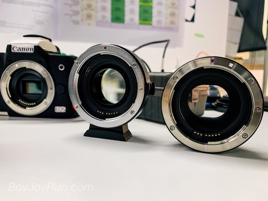 Viltrox EF-EOS M2 จะมีเลนส์เพิ่มมา 1 ชิ้น ตรงกลาง ที่ทำให้ความสามารถของเลนส์ กว้างเพิ่มขึ้น
