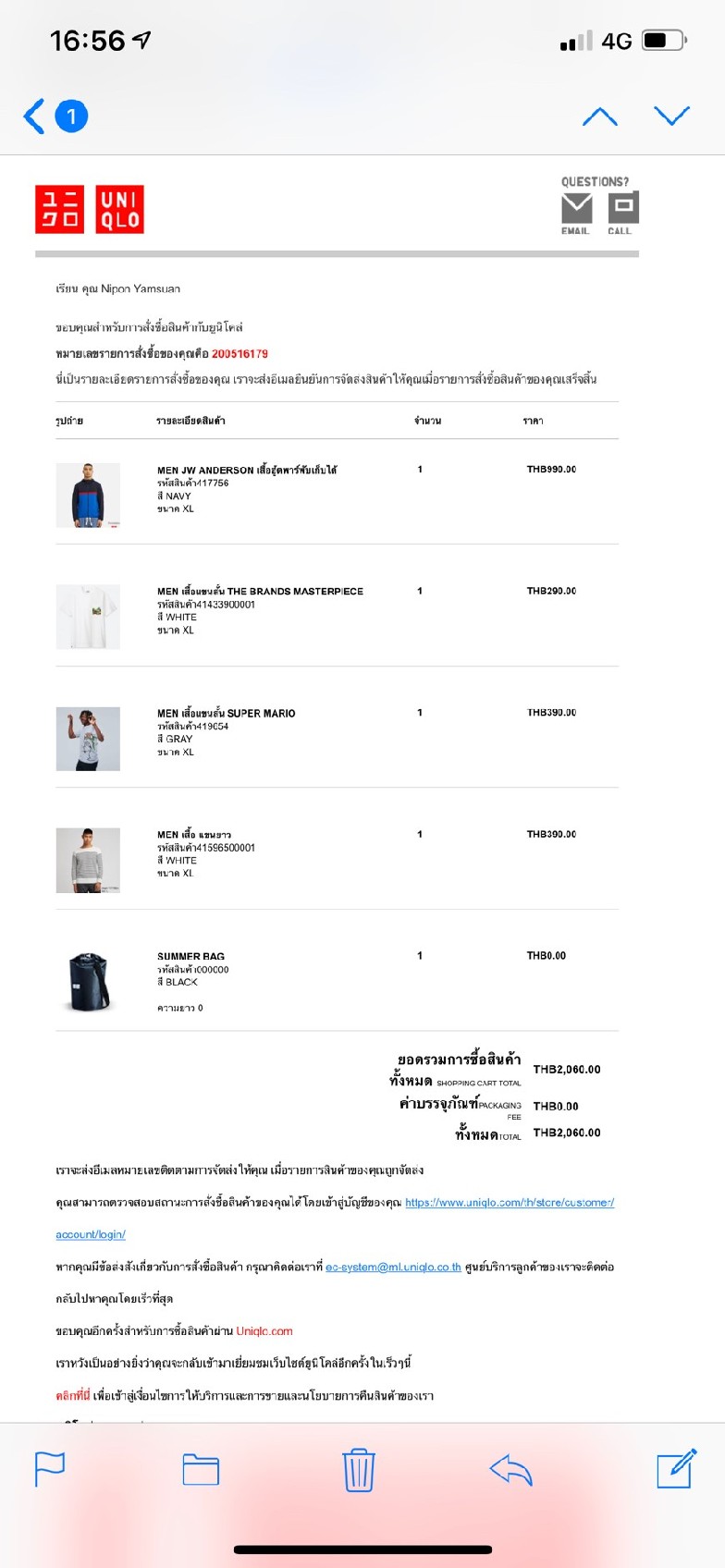 จนมาถึงวันนี้ วันที่เขียน blog วันพุธที่ 10 เมษายน เวลา 16.30 น. ก็มีโทรศัพท์เข้ามา แล้วปลายสายก็แจ้งว่า มาส่งสินค้าจาก ยูนิโคล่ ครับ