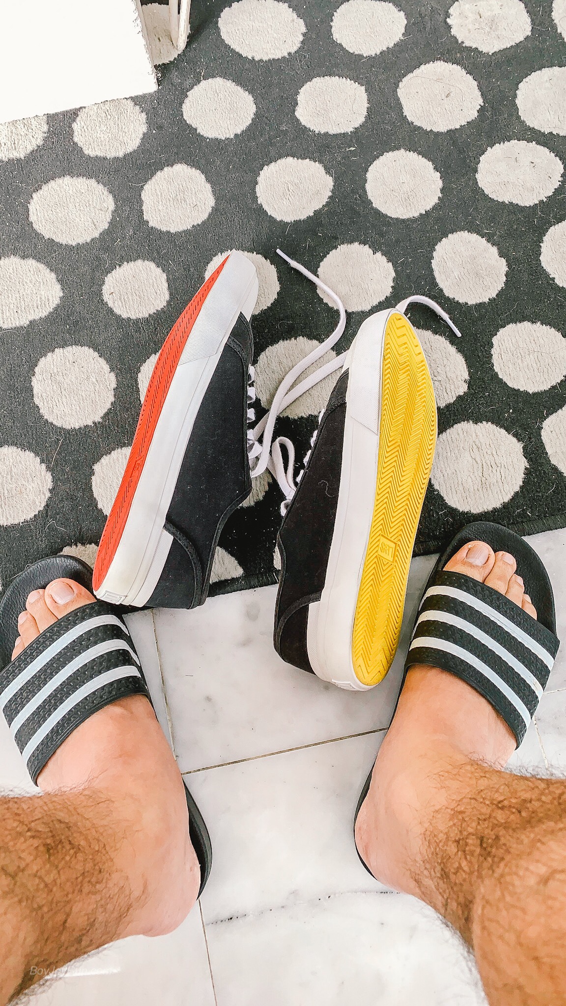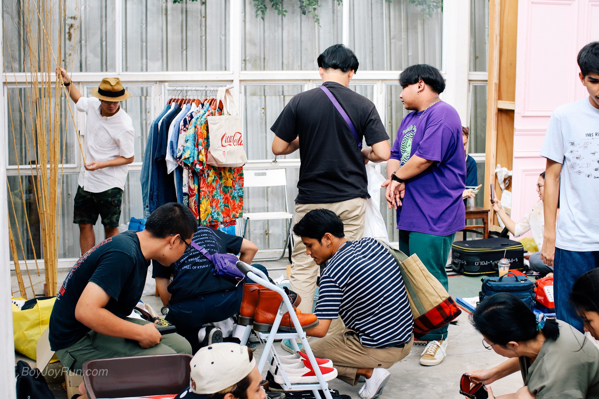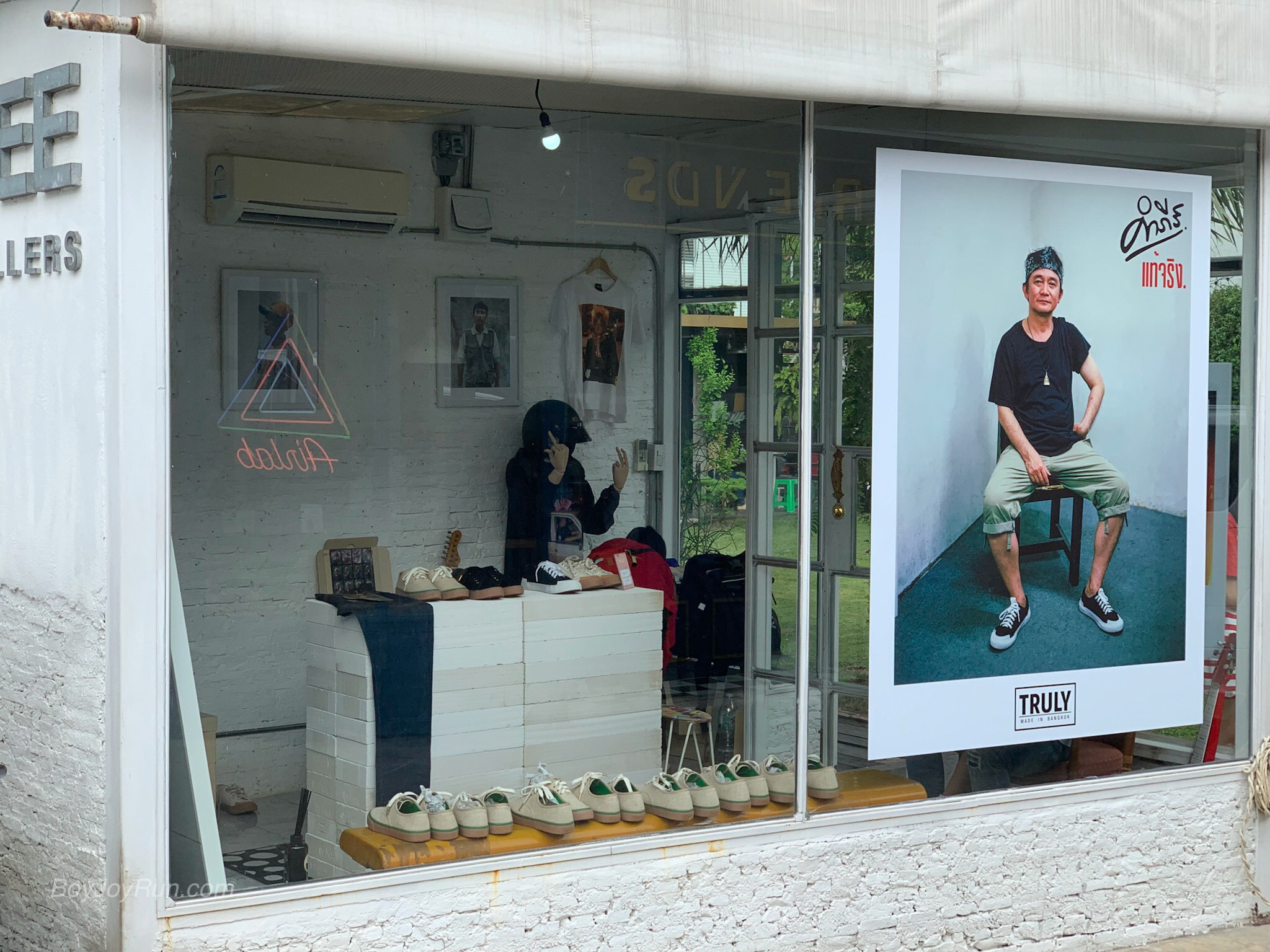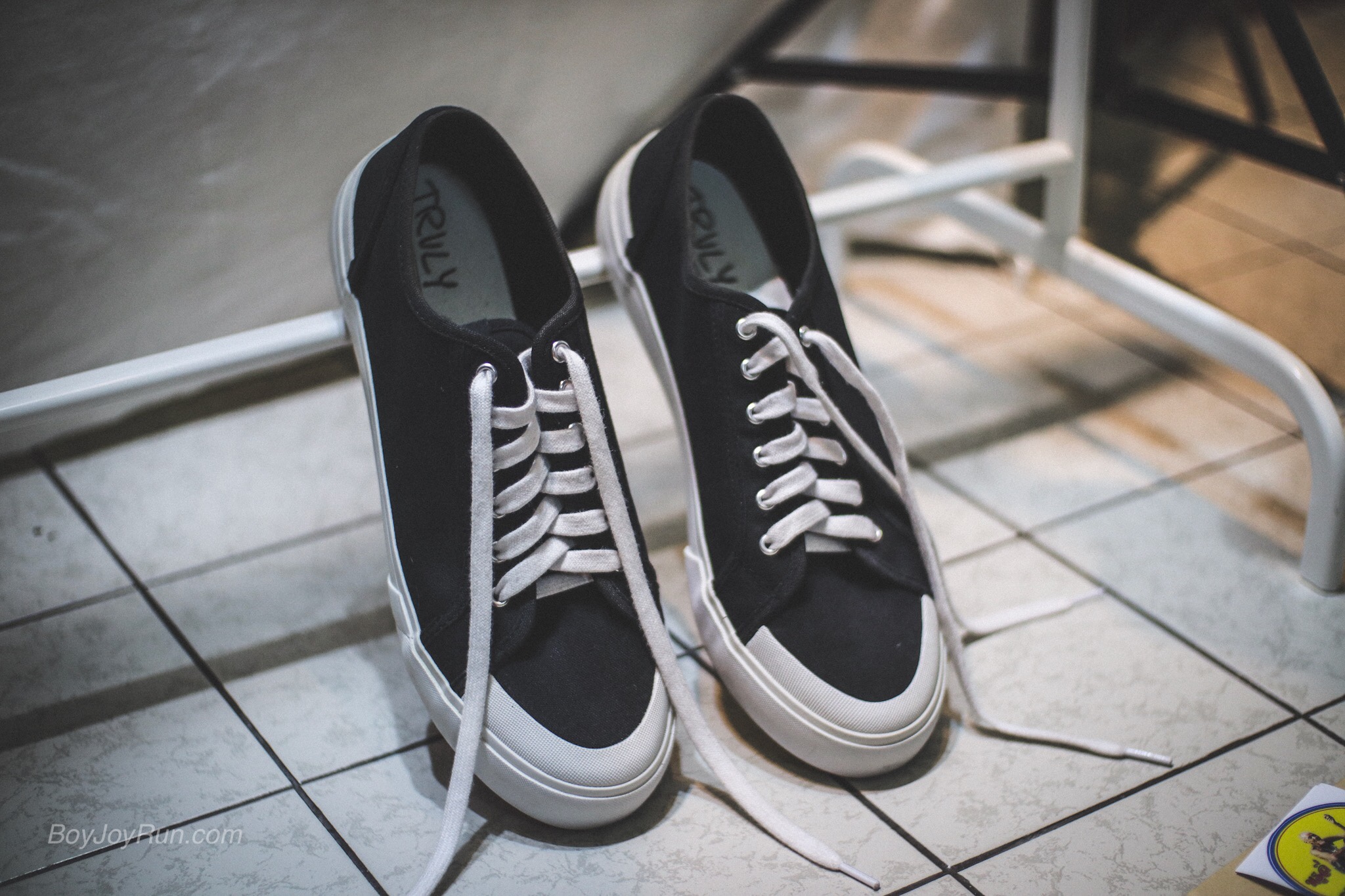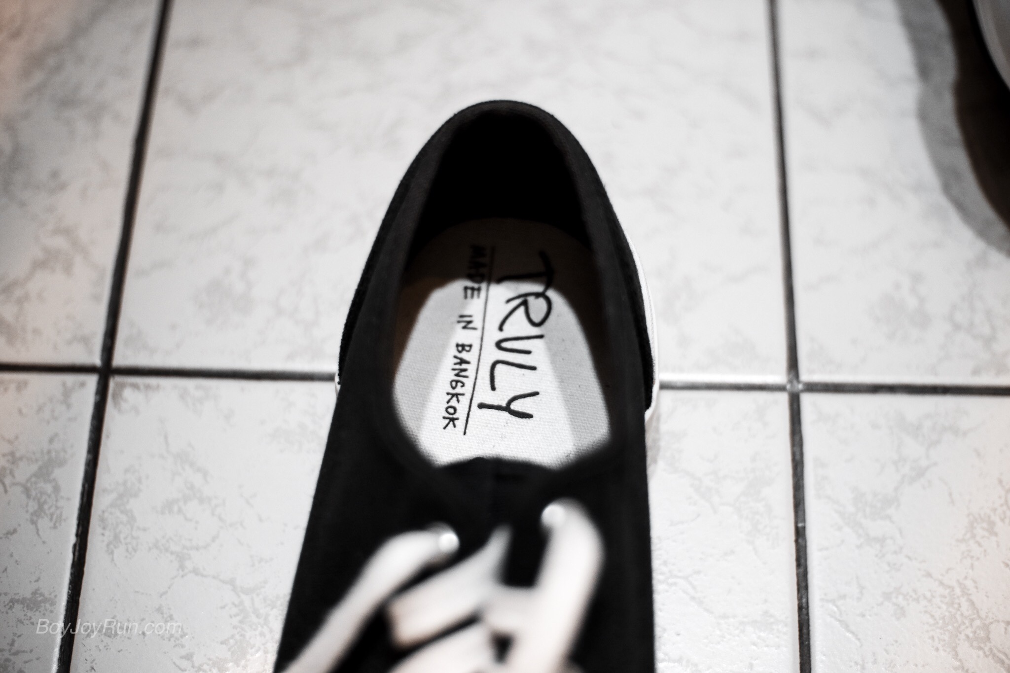 มาเริ่มจาก สิ่งแรก ที่พากลับมา รองเท้าผ้าใบ สีดำ ตัด ขาว คู่นี้ มีชื่อรุ่นว่า “สติ” ที่วางแสดงไว้ที่ชั้นวาง ภายในงาน และ เป็นคู่สุดท้าย ของ สินค้ากลุ่มแรกๆ ที่ทำไว้ มันจะไม่เหลือได้ไงหล่ะ ก็ตัวมันเองใหญ่เบ้อเริ่ม ถึง ขนาด 13US แต่มันก็ ปกคลุมเท้าผมได้ดูดี ไม่เก้อเขินเลยที่จะรีบพากลับมาแบบไร้สติ และเสียสตางค์