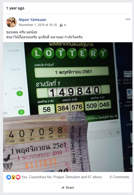 วันนี้เมื่อปีที่แล้วกู ถูกหวยนี่หว่า!