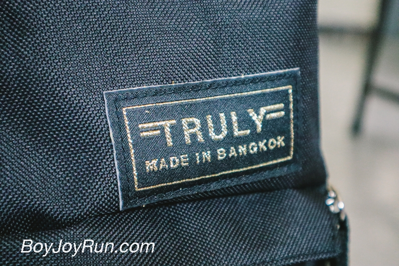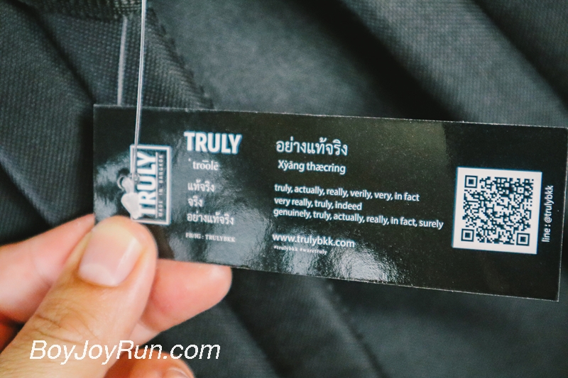 ชัดๆป้ายแบรนด์ TRULY ดิ้นทองที่ทอลงผ้าดำ เก๋ามาก และอีกคำที่ทำให้รู้สึกพอใจ MADE IN BANGKOK