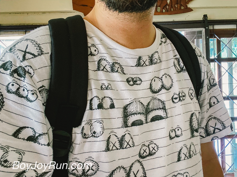 สำหรับผมตัวสูง 180 cm. น้ำหนัก 88 กิโลกรัม พอสะพาย EYE ขึ้นหลังแล้วก็จะประมาณนี้ ไม่ใหญ่ไปหรือเล็กไป ขนาดกำลังพอดีความคล่องตัวได้อยู่